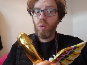 Tonight I’d like to share some love to the other awesome finalists, the judges and organisers. It takes guts to publicly start honouring sexuality professionals in a largely sex negative culture and so full extension of appreciation for putting this event on year after year. Most of all I want to honour those sex workers who don’t have the benefits I do and who can’t be standing here tonight even though they’re in many cases harder working and more deserving.